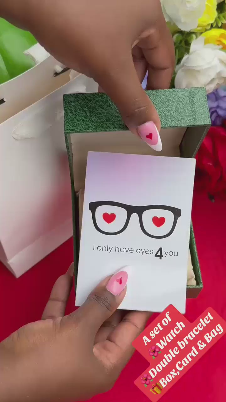 # Valentine's Ladies Gift Set – Watch & Jewelry Collection Celebrate love with this thoughtfully curated Valentine's gift set designed for the modern woman. This collection pairs an elegant ladies' watch with a coordinated jewelry set, creating a complete accessory package that transitions seamlessly from everyday wear to special occasions. The watch delivers reliable timekeeping with refined styling, while the jewelry pieces add versatility and sophistication to any wardrobe. Perfect for gifting to someone special or treating yourself this Valentine's season. Each piece is selected to complement the others, offering both aesthetic appeal and practical everyday functionality.