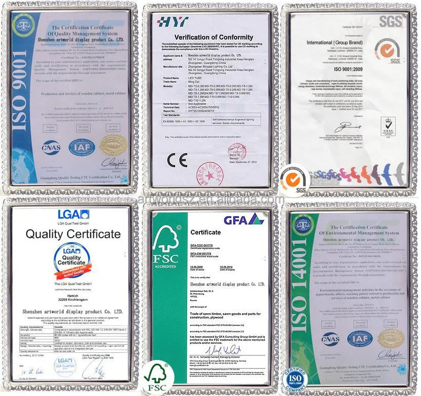 Different countries and different area need different certification , Artworld offer test report or certifications as clients request ...