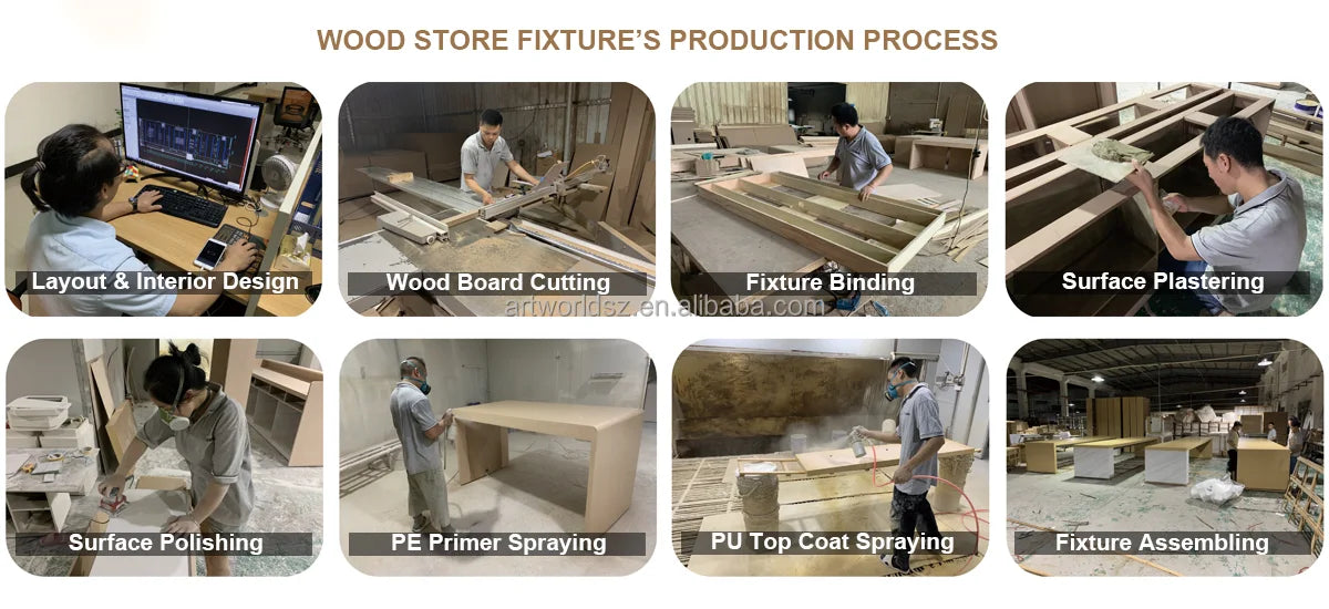 MDF with baking paint, Plywood, wood venner, ultra clear tempered glass, acrylic, LED light etc.