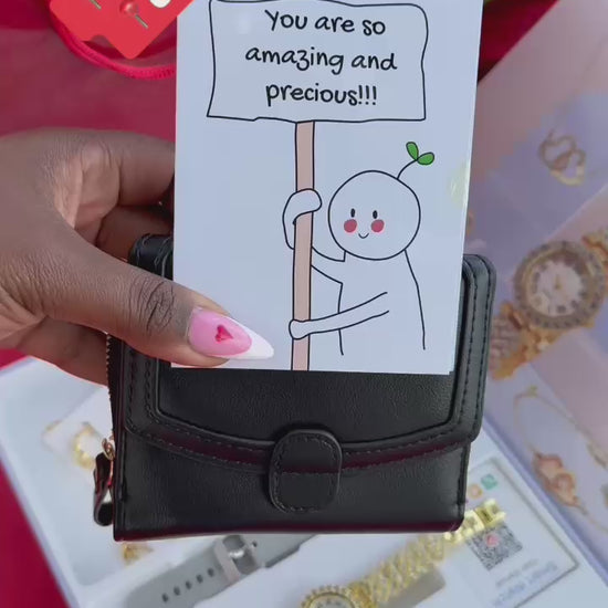 The perfect Valentine's Day pairing for the modern woman. This curated gift set combines a sleek smartwatch with a stylish purse, delivering both functionality and fashion in one thoughtful package. The smartwatch keeps her connected with fitness tracking, notifications, and health monitoring, while the coordinated purse complements her everyday look. Ideal for partners, friends, or anyone deserving a dual-purpose gift that celebrates her lifestyle. Make this Valentine's season unforgettable with a present she'll use and love every day.